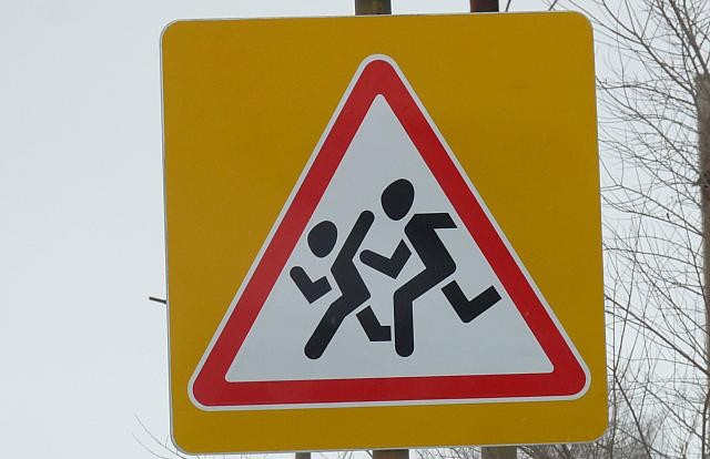 Дорожный знак 1.23 "Дети" с желто-зеленой флуоресцентной полосой в Закаменске