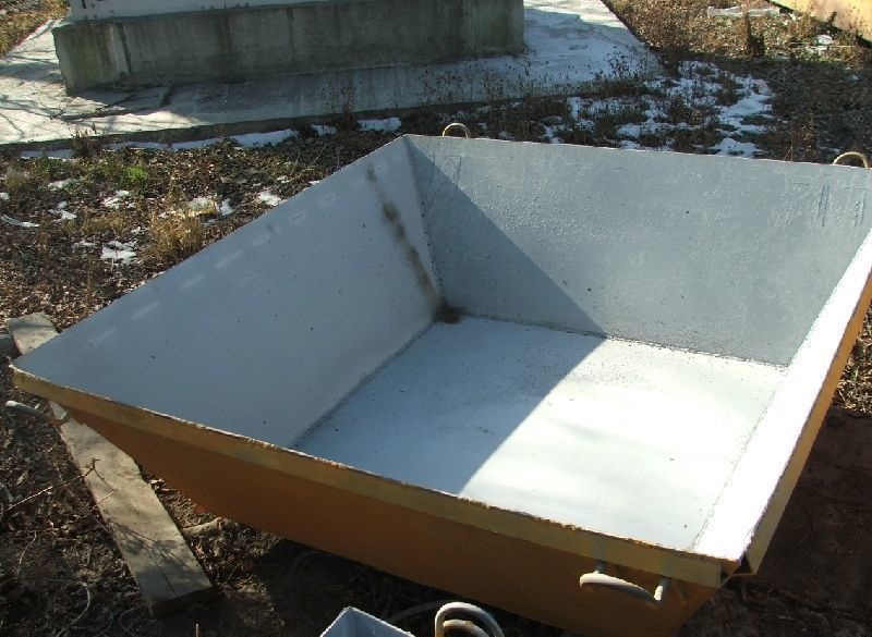 Ящик для бетона (тара для раствора) с четырьмя проушинами предназначен для хранения и транспортировки раствора с помощью крана. Ящик для раствора или ящик каменщика имеет форму усеченной пирамиды с вершиной, направленной вниз. Стенки и днище выполнены из листового металла. Прочность ящика для раствора рассчитана для транспортировки его краном. Низкая цена и высокое качество делают ящики для раствора и бетона лидерами продаж.